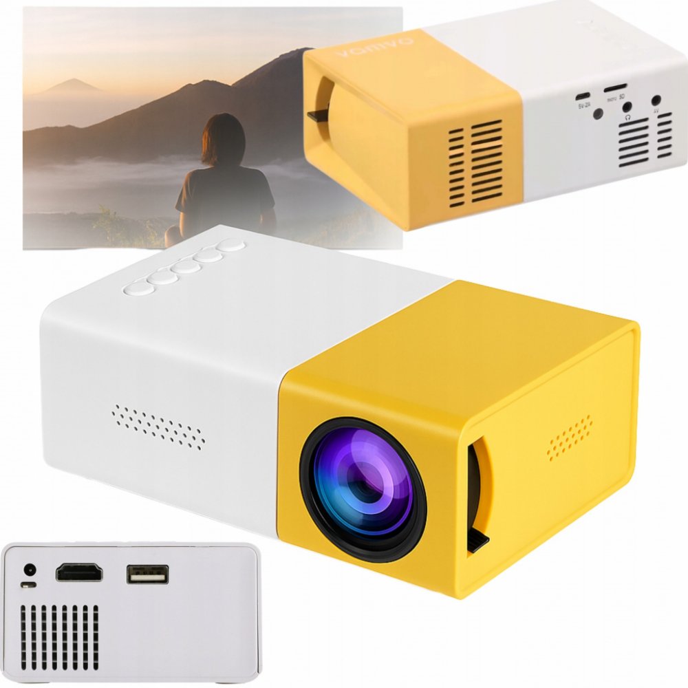 Přenosný filmový projektor má výkon 20 lm a podporuje rozlišení 1080P. S poměrem stran 4:3 umožňuje promítání ve vzdálenosti 1m-66cm a projekci až 60 palců. Vestavěné reproduktory poskytují realistický zvukový doprovod, což zaručuje skvělý zvukový zážitek.