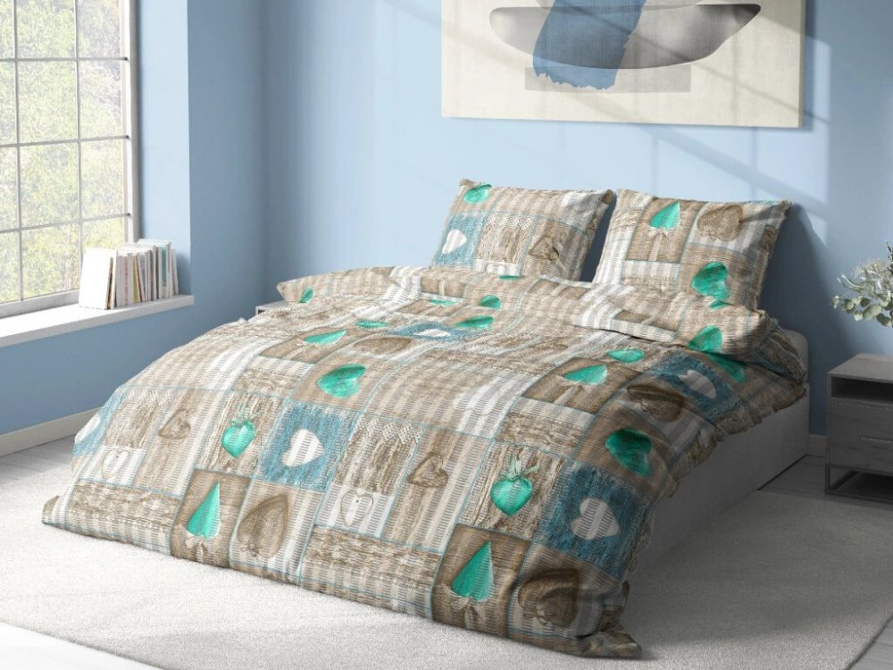 Aaryans krep povlečení HEARTS zelené 140x200 70x90