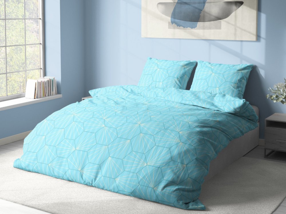 Kvalitní krepové povlečení na jednolůžko s moderním geometrickým vzorem v světle modré barvě. Krepové povlečení je vyrobeno z 80 % bavlny a 20 % polyesteru. Je příjemné na dotek a rovněž vyniká svou kvalitou, která zaručuje stálost barev i rozměru. Jistě oceníte i jeho velmi snadnou údržbu. Nemačká se a není ho tedy třeba žehlit. Poskytuje skvělou termoizolaci, díky čemuž vás v zimě zahřeje a v lé...