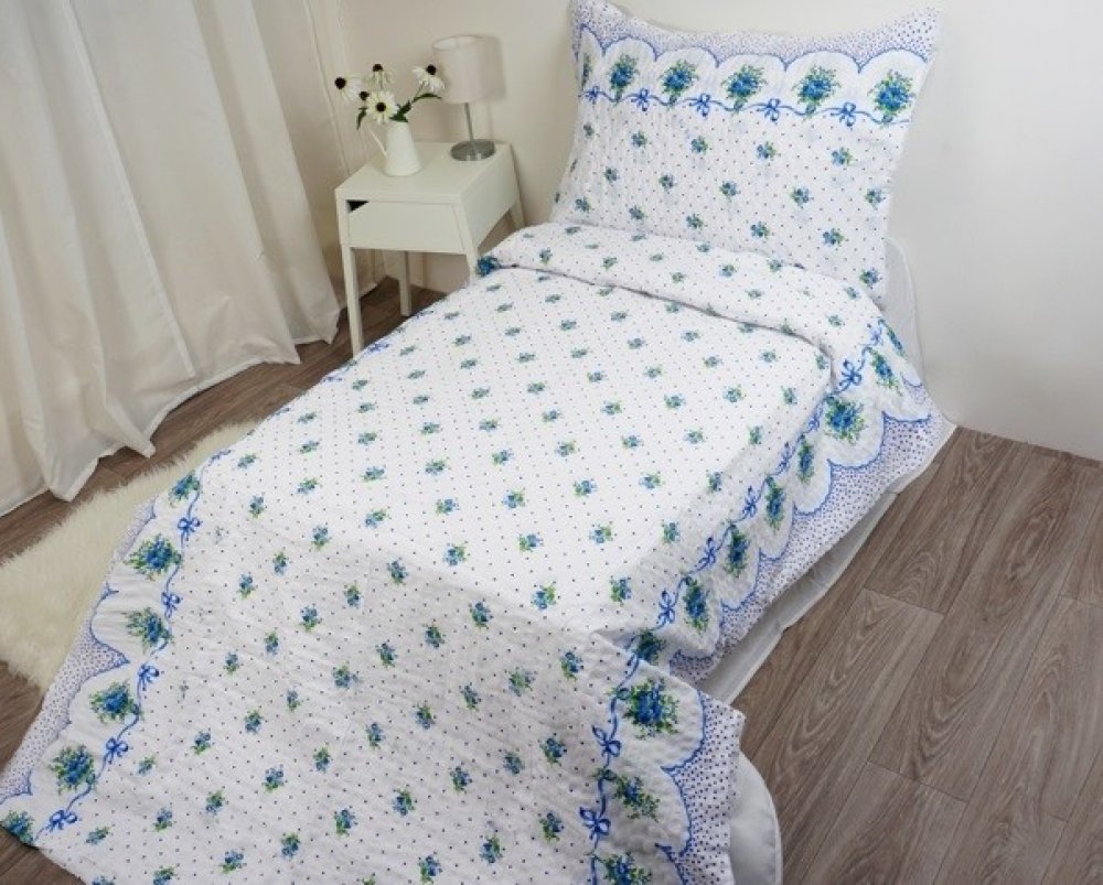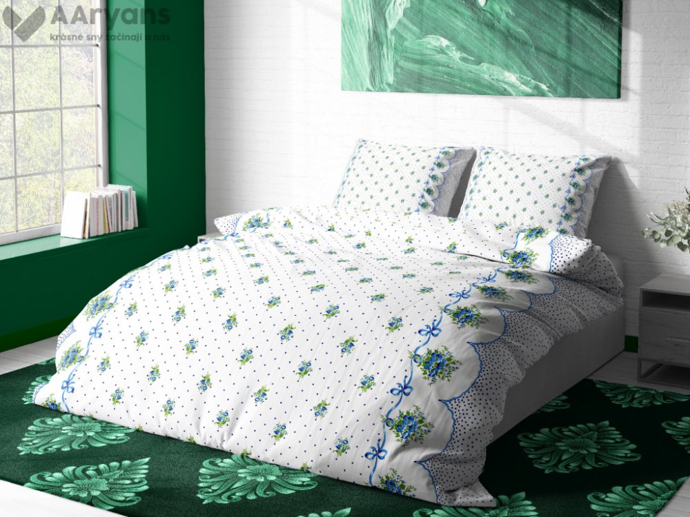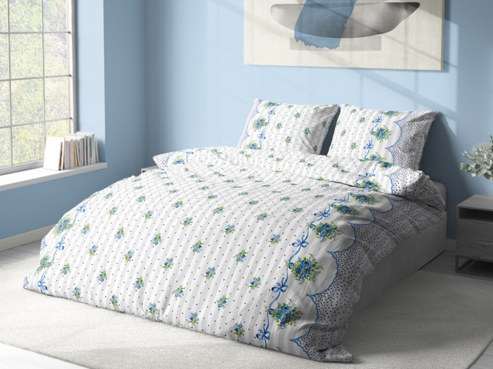 Kvalitní bavlněné povlečení na jednolůžko s romantickým vzorem modrých kytiček. Povlečení je vyrobeno ze směsi bavlny s úpravou krep - nežehlivé. Je velmi příjemné na dotek, spolehlivě vás zahřeje a výborně absorbuje vlhkost, což oceníte především v letních měsících. Vysoká kvalita zpracování zajišťuje stálost barev a rozměru.