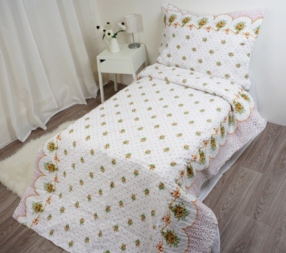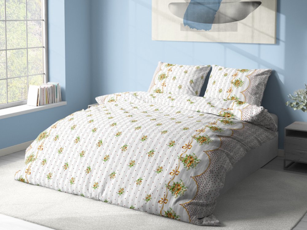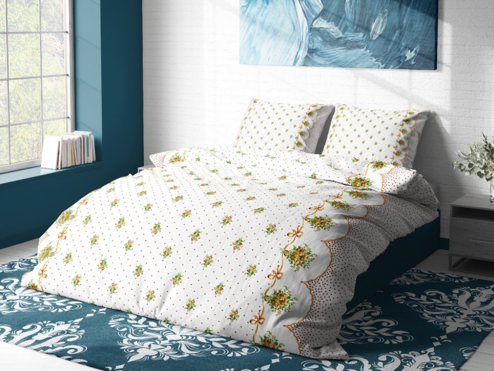 Kvalitní bavlněné povlečení na jednolůžko s romantickým vzorem kytiček. Povlečení je vyrobeno ze směsi bavlny s úpravou krep - nežehlivé. Je velmi příjemné na dotek, spolehlivě vás zahřeje a výborně absorbuje vlhkost, což oceníte především v letních měsících. Vysoká kvalita zpracování zajišťuje stálost barev a rozměru.