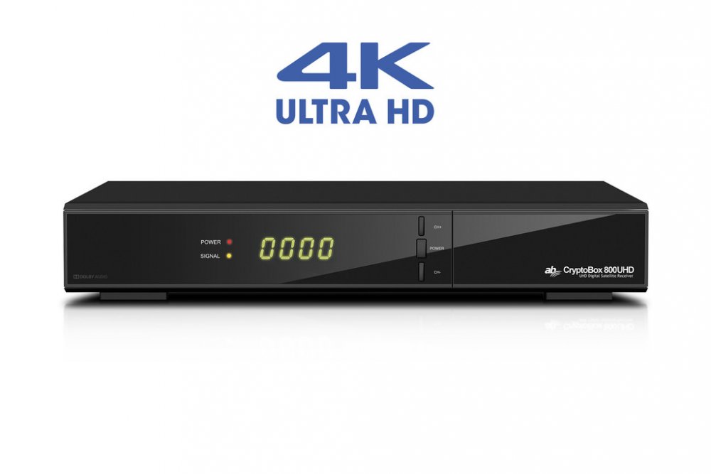 Satelitní přijímač AB Cryptobox 800 UHD s možností příjmu v ULTRA HD 4K rozlišení.