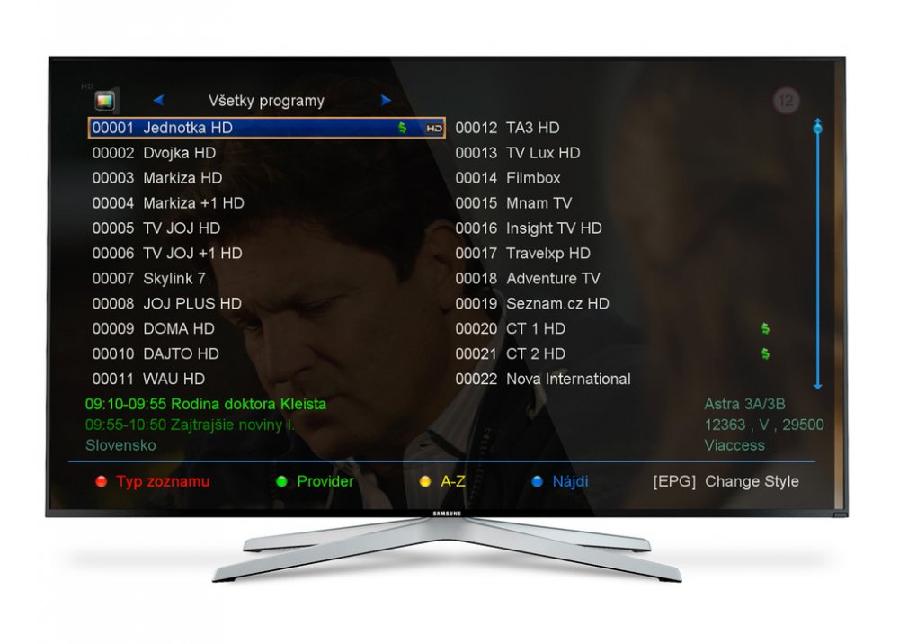 Přijímač je vybavený univerzální čtečkou karet a podporuje nový kodek H.265 HEVC.