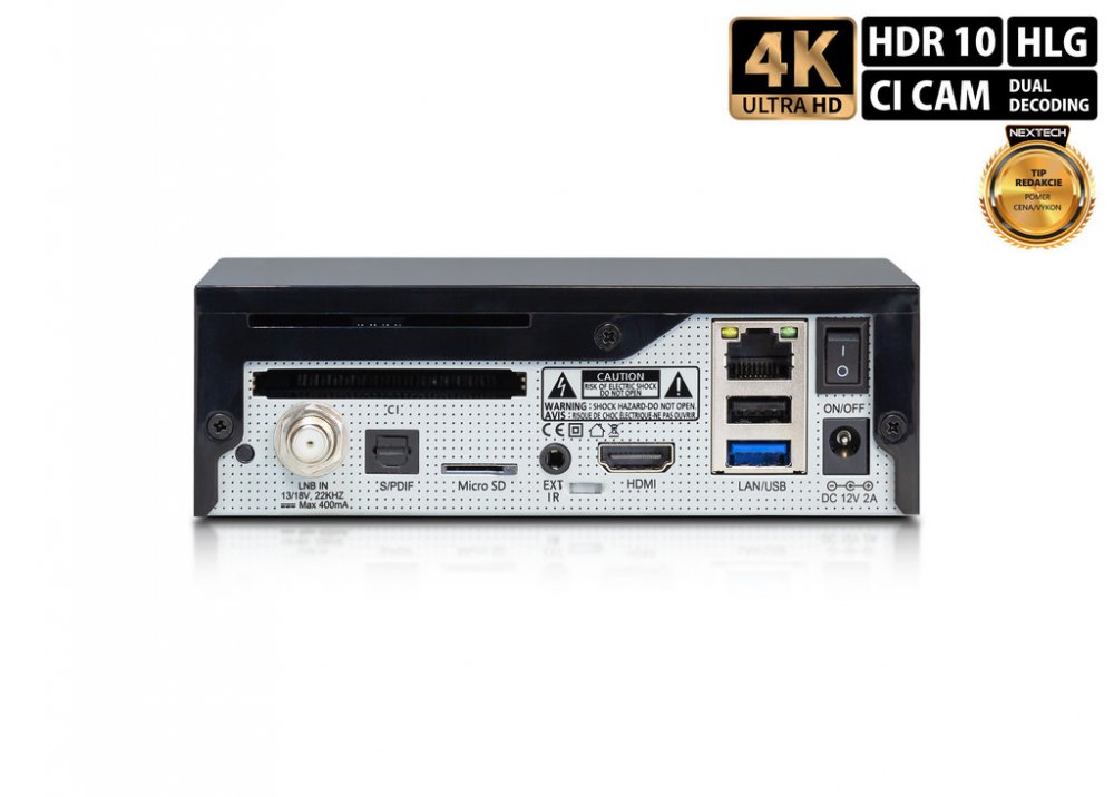 ULTRA HD 4K linuxový přijímač v minimalistickém a elegantním designu s možností satelitního DVB-S2X příjmu. Neomezené možnosti díky softwaru založeném na operačním systému Linux Enigma2 OpenATV. Vybavený CI/CI+ slotem a čtečkou karet.