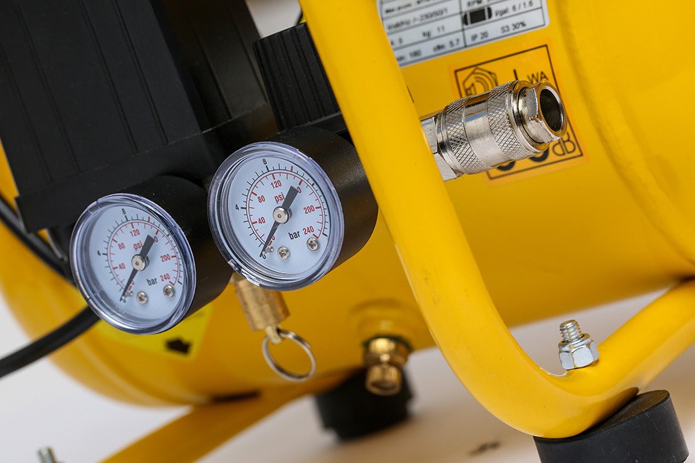 - dva manometry pro odečet hodnoty výstupního tlaku a tlaku ve vzdušníku