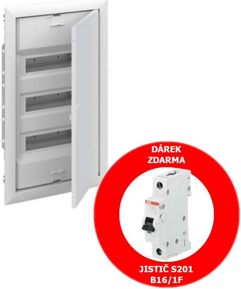 2CPX077842R9999 UK636E3 Rozvodnice zapuštěná 36M, 3 řady, IP30, s plechovými dvířky, se šroubovými svorkami N/PE, ABB