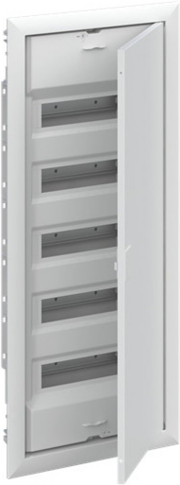 Skříň pod omítku, řada UK600, pro vnitřní použití, s uzavřeným rámem a dveřmi, třída ochrany II (dvojitě izolovaná), stupeň ochrany IP30, platné normy: EN 60670-24, Kód IK 07, Jmenovité provozní napětí 400V AC 50/60 Hz, jmenovitý proud 63 A, odolnost proti žhavému drátu 850°C, práškově lakovaný, v RAL 9016, z termoplastu, s rámem čalounění a kovovými dveřmi, dveře z ocelového plechu, v RAL 9016, s TIP-in uzávěrem, úhlem otevření dveří 120 stupňů, dveřním závěsem vpravo nebo vlevo, vstup kabelu nahoře přes kabelový vstupní posuvný díl je předražený, na straně přes předděrovaný, zadní stěna předděrovaná, rozměry v mm (H x W x D): 872 x 384 x 97. Rozměry rámu závěrky v mm (H x W x D): 872 x 384 x 9, 5 řádků, prostorové jednotky 60, vzdálenost řádku v mm: 125, kryty z plastu.