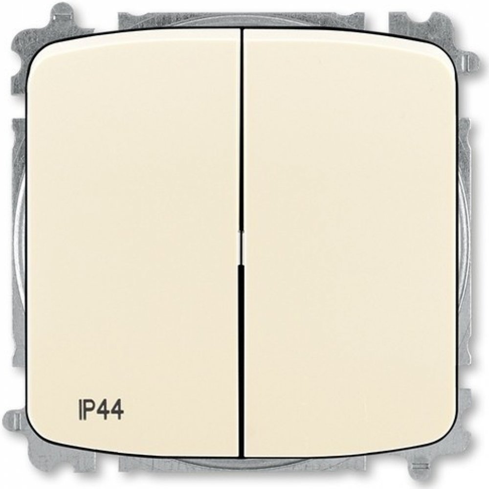 Střídavý dvojitý vypínač TANGO 3559A-A52940 C řazení č. 6+ 6 (5b) v barvě slonová kost z oblíbené řady výrobce ABB s vyšším krytím IP44 pro zapuštěnou montáž, určen pro použití v domácnostech, ale i průmyslových objektech. Doporučená montáž s elektroinstalační krabicí 68.