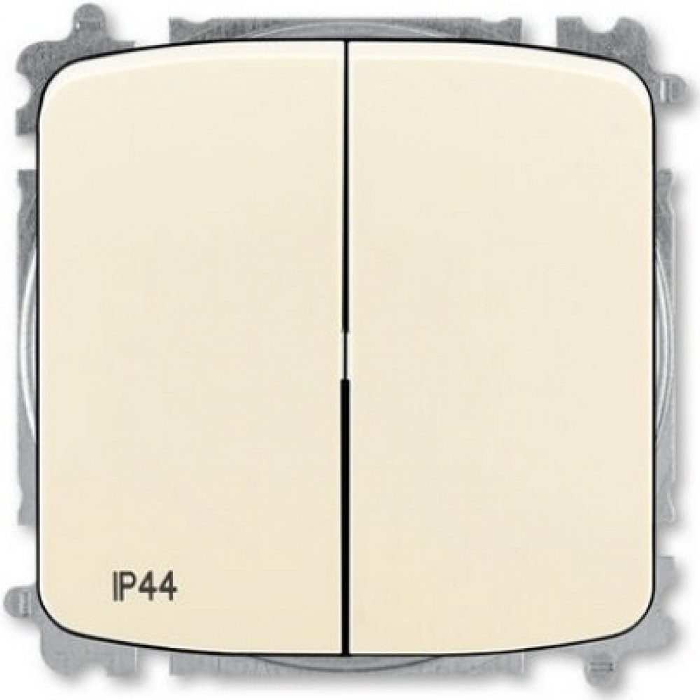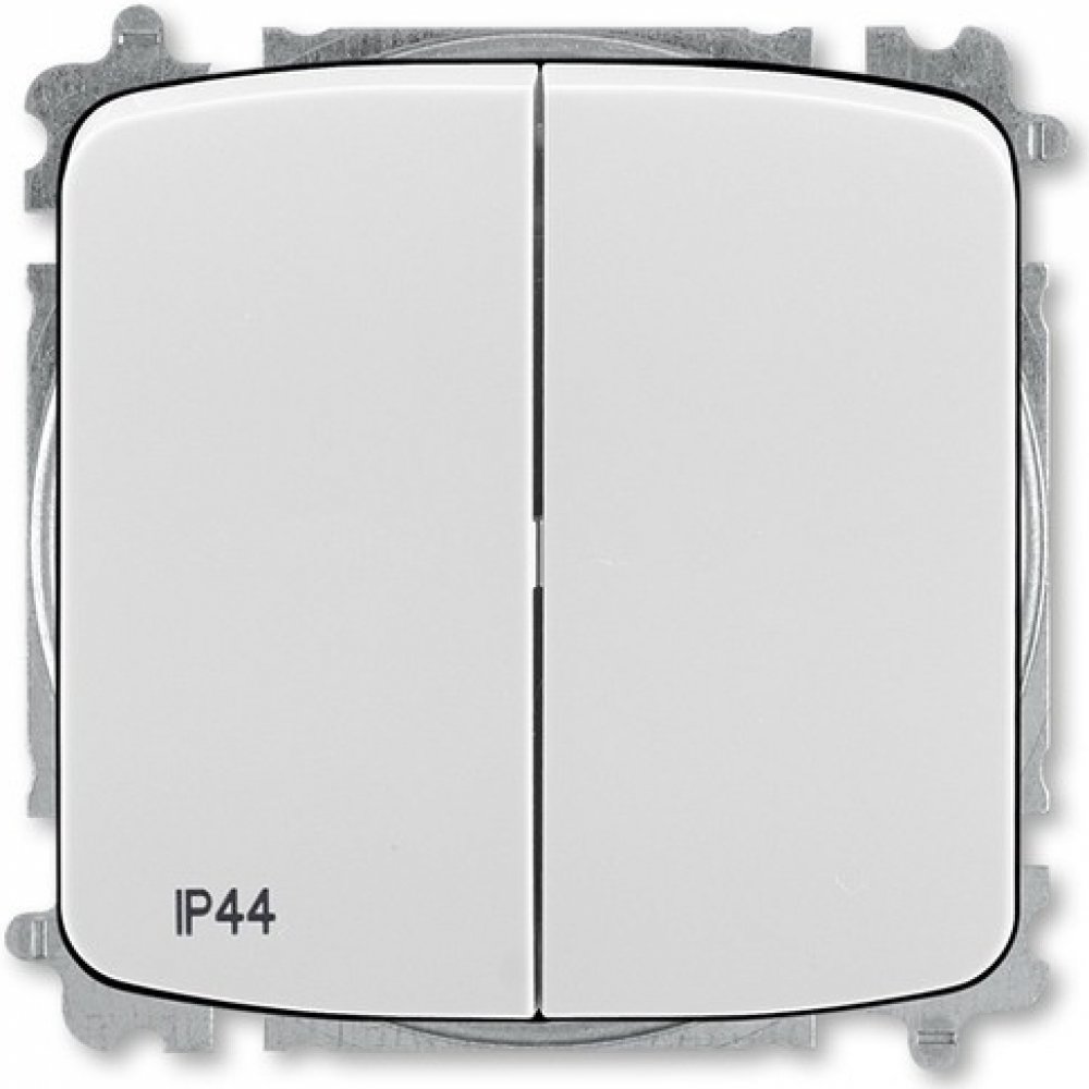 Střídavý dvojitý vypínač TANGO 3559A-A52940 S řazení č. 6+ 6 (5b) v šedé barvě z oblíbené řady výrobce ABB s vyšším krytím IP44 pro zapuštěnou montáž, určen pro použití v domácnostech, ale i průmyslových objektech. Doporučená montáž s elektroinstalační krabicí 68.
