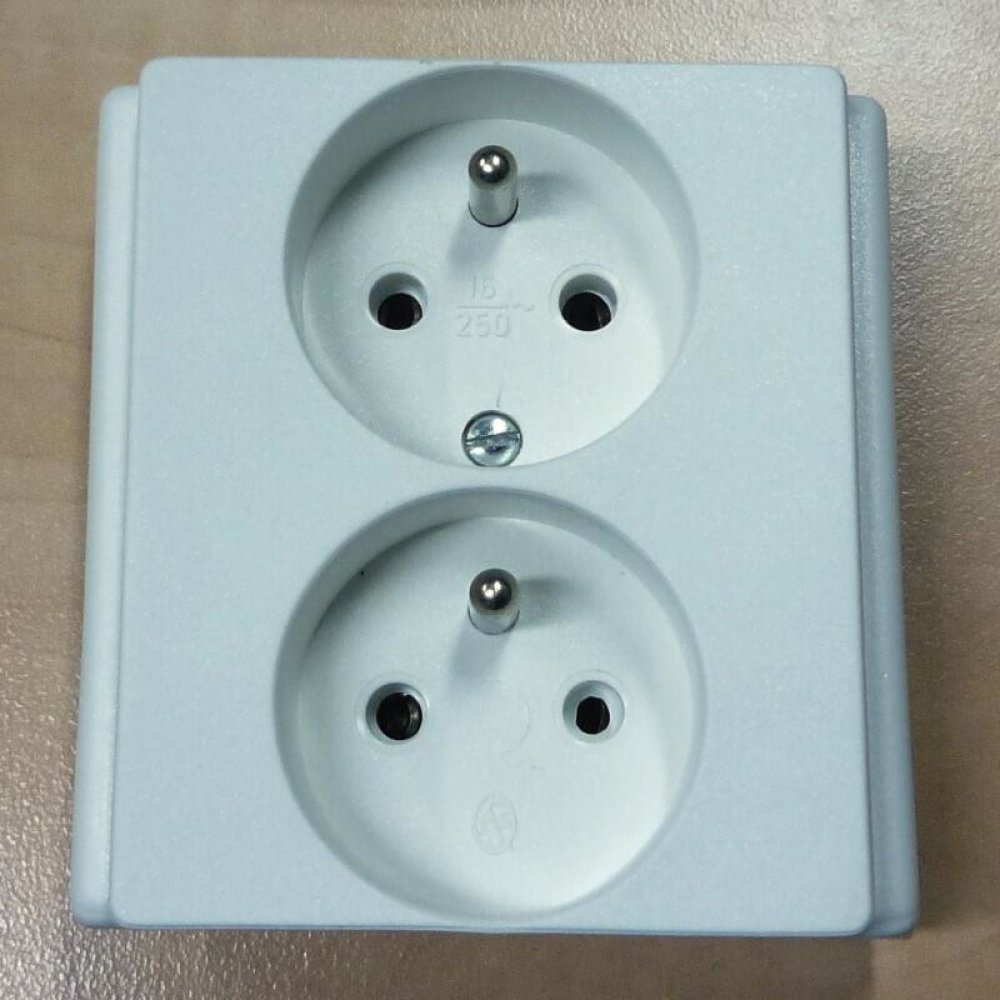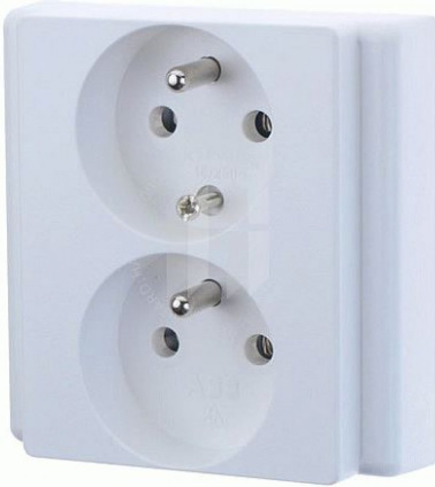 Zásuvka dvojnásobná chráněná, 81x81 mm; jasně bílá