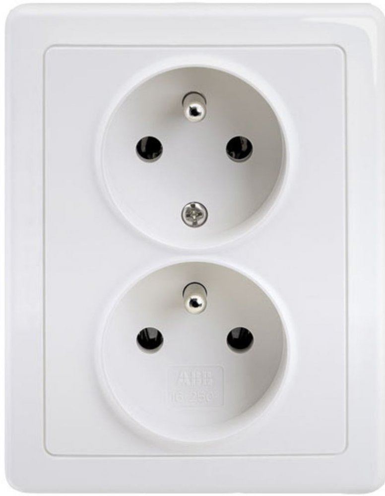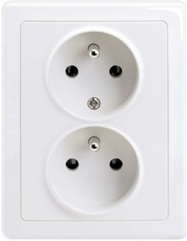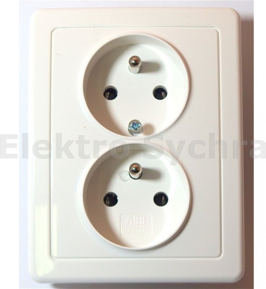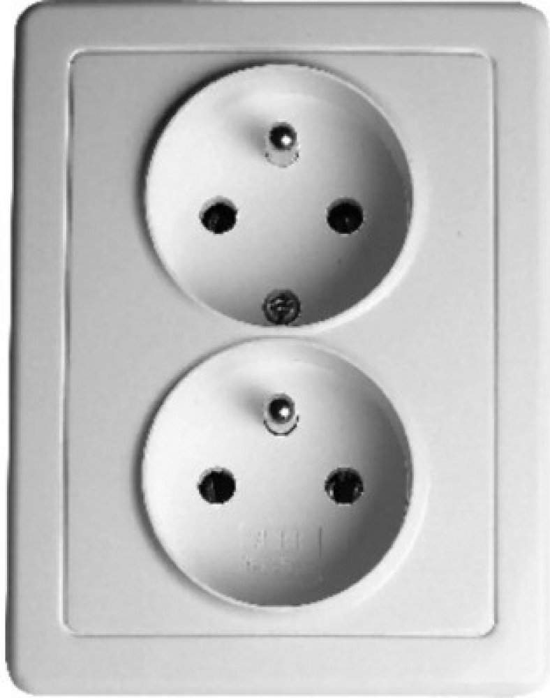 Zásuvka dvojnásobná s ochrannými kolíky; jasně bílá