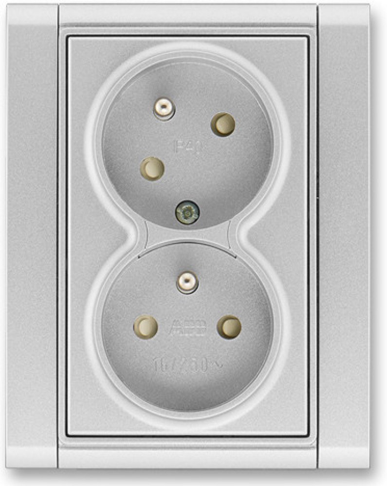 Zásuvka dvojnásobná s ochrannými kolíky, s clonkami, s natočenou dutinou - titanová.