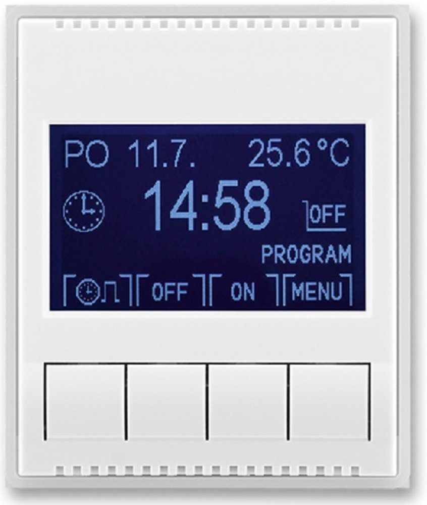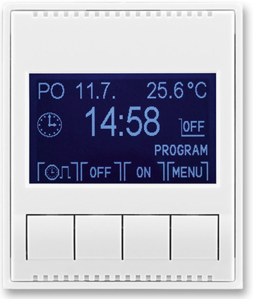 Ovládací jednotka pro hodiny spínací programovatelné ABB. Provozní režimy: manuální, automatický (1 nebo 3 časové programy), dovolená