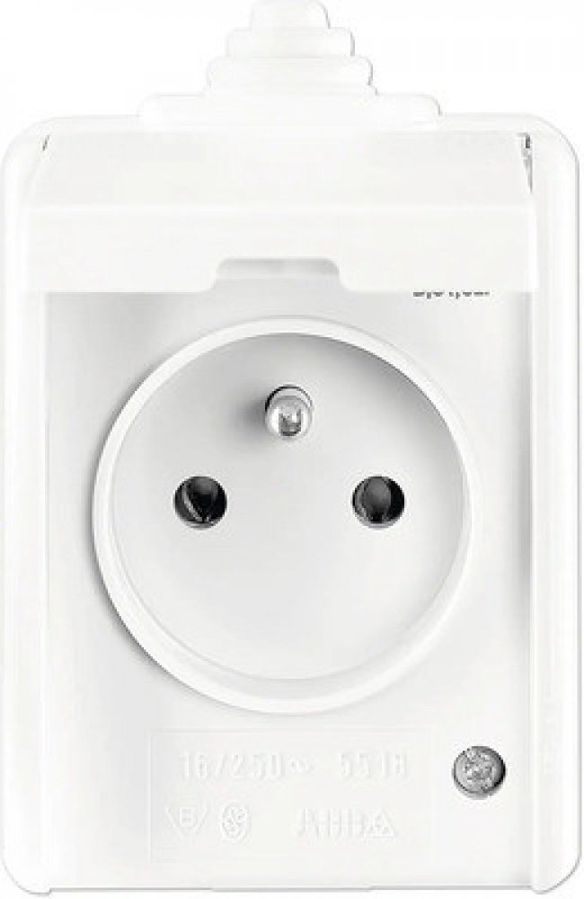 Jednonásobná zásuvka PRAKTIK je vyrobená z velmi kvalitního termoplastu a slouží pro použití v náročných interiérech a exteriérech jako jsou výrobní provozy, sklady, chodby v bytových domech apod. Poskytuje snadnou montáž a také připojení pomocí šroubových svorek (pro vodiče 1,5-2,5 mm²). Instaluje se přímo na zeď a obsahuje ochranný kolík a odklápěcí víčko. Pro zajištění stupně krytí IP44 je nutné u krabice přístroje otevřít odkapní otvor směrem k zemi. Spodní část krabice přístroje lze otočit o 180° pro přívod kabelu zespodu.