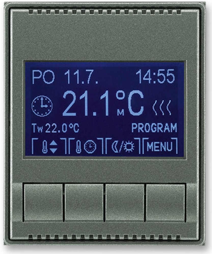 Termostat univerzální programovatelný (ovládací jednotka) ABB Time 3292E-A10301 34 Volitelná funkce prostorového, podlahového nebo kombinovaného termostatu.