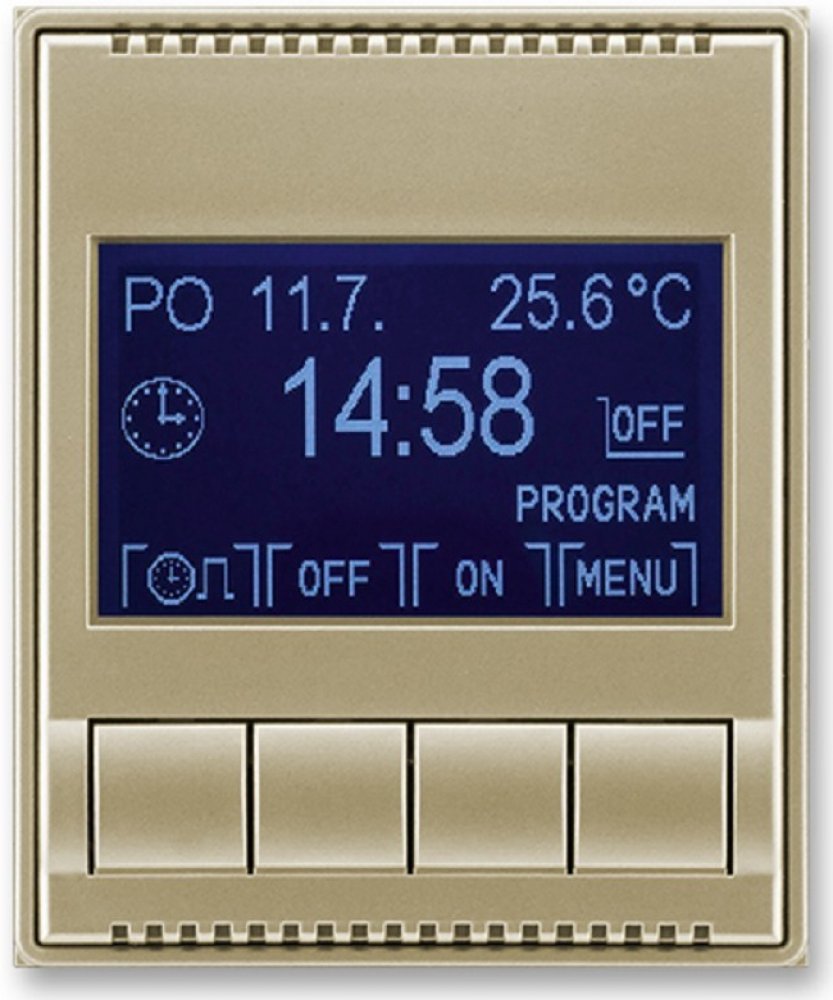 Ovládací jednotka pro hodiny spínací programovatelné ABB. Provozní režimy: manuální, automatický (1 nebo 3 časové programy), dovolená