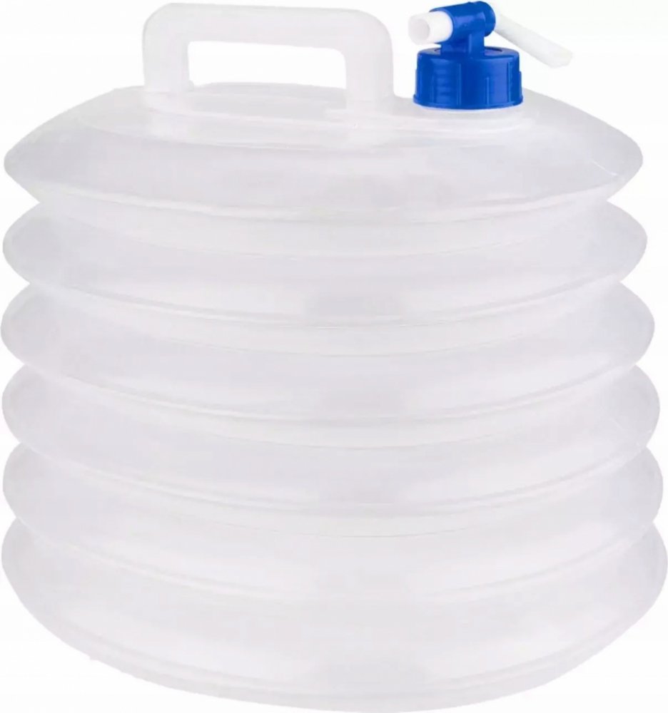 Patnáctilitrový kanystr je skvělá vychytávka nejen pro kempaře. Společně se šroubovacím víčkem je ke kanystru přibalen i speciální praktický kohoutek pro natočení vody. Ovšem jeho největší předností je, že pokud je prázdný, dá se lehce složit a nezabírá skoro žádné místo. Pro delší životnost je kanystr vybaven zesílenou rukojetí.