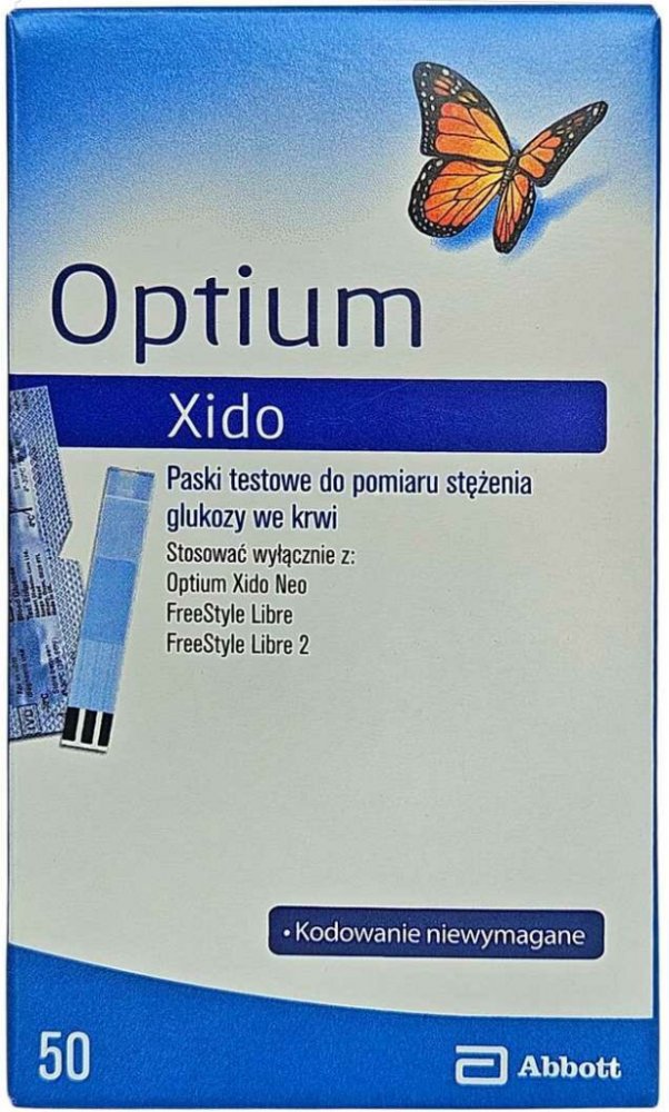 Balení: 1 kus / 50 proužků (testovací proužky ke glukometru XIDO)