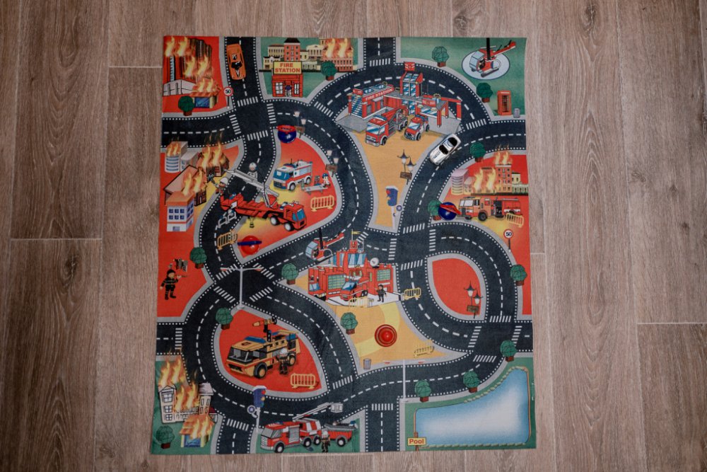 - 4 varianty produktu: Policie, hasiči, staveniště, letiště. Zakupte si libovolný počet koberečků, vždy Vám budou silnice pasovat, ať už koberečky spojíte z kterékoliv strany.