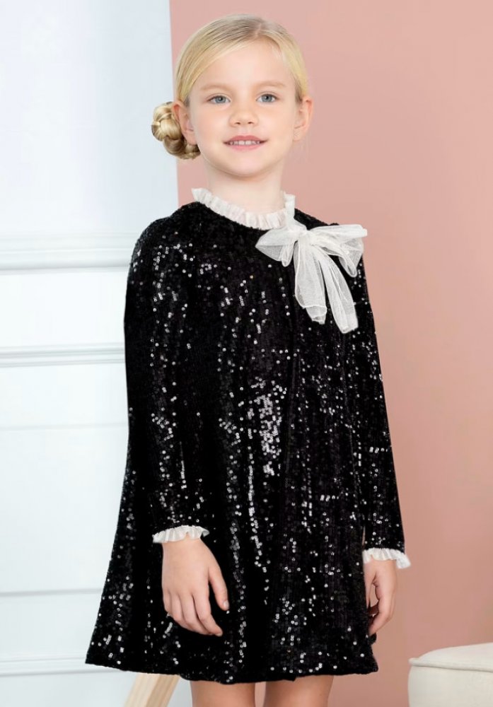 Abel & Lula šaty s dlouhým rukávem a flitry černé