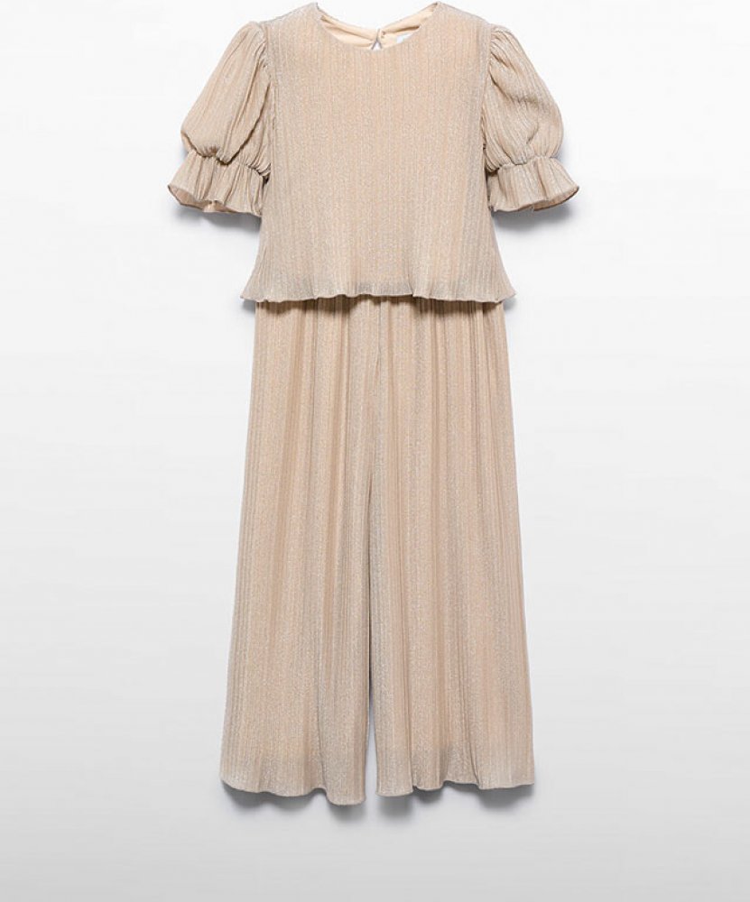 Luxusní dívčí set halenky a kalhotové sukně. Oba kousky jsou ze skvělého materiálu. Halenka i kalhotová sukně mají aplikaci plisování. halenka má lehce nabírané rukávy s řasením. Kalhotová sukně je 7/8 délky, v pase je pružná měkká guma. Celý set se lehce třpytí.