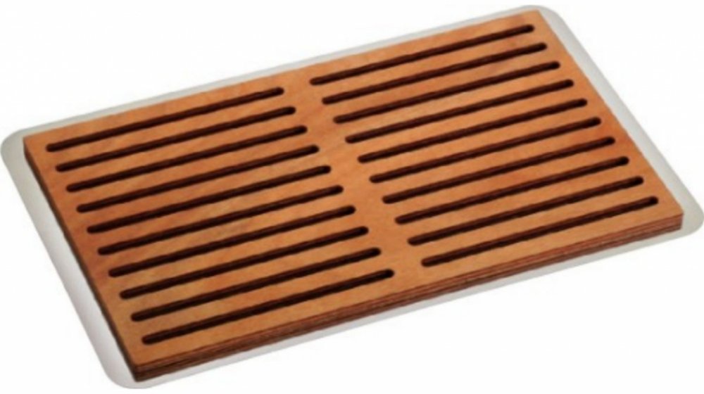 Tato dřevěná deska slouží pro krájení pečiva. Je doplněna nerezovým tácem, na který spadnou všechny drobky při krájení, a tak vám šetří čas s úklidem nepořádku. Desku i tác můžete využít také k samotnému servírování.