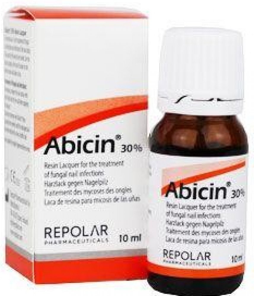 Léčba plísňové infekce nehtů: V případě potřeby povrch nehtu zdrsněte pilníkem, omyjte a osušte před aplikací laku. Naneste tenkou vrstvu laku na celý postižený povrch nehtu pomocí štětečku, který je součástí uzávěru a nechte zaschnout. Pokračujte v léčbě přípravkem Abicin® dvakrát týdně, dokud nebude poškozený nehet nahrazen novým, zdravým nehtem.