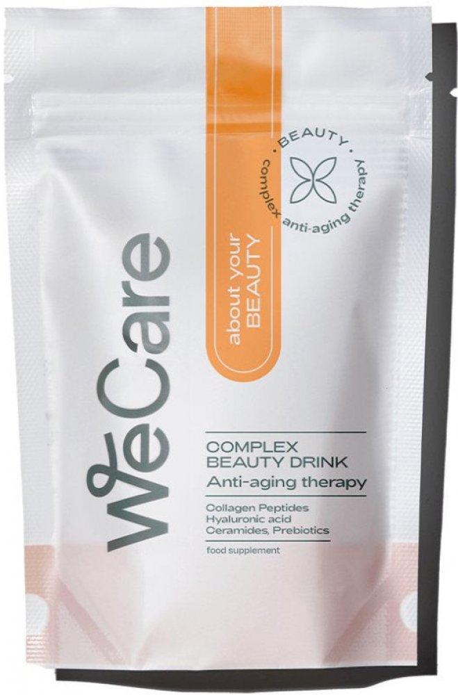 WECARE About your BEAUTY tubus 28 sáčků Anti-Aging nápoj s kolagenními peptidy s příchutí mandarinky. Prémiový doplněk stravy, který pleť hydratuje, vyživuje a zpomaluje proces stárnutí. Po pár týdnech se pleti navrací její pružnost.