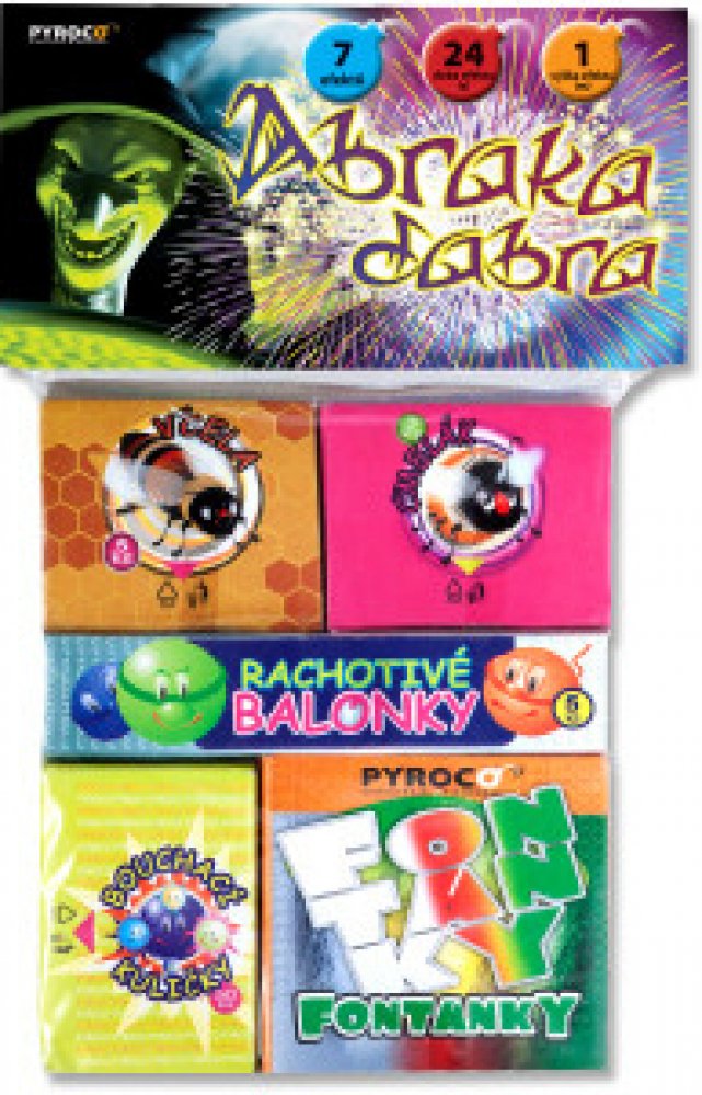 Abraka DabraKód výrobku: 100AEfekt: mix různých včelek, čmeláků, rachotivé balonky, bouchací kuličky a fontánkyPočet ran: 0 ranPrůměr moždíře: 0 mmDoba trvání efektu: 25 sec.Rozměry (DxŠxV): 22,5x15x2,5 cmHmotnost pyroslože: 17,2 gTřída nebezpečí: Kategorie F1 - Prodej od 15 let.ADR zařazení: 1,4GVáha: 0,11 kg Bezpečnostní pokyny: Vždy používejte jednotlivě a postupujte podle návodu na výrobku!...