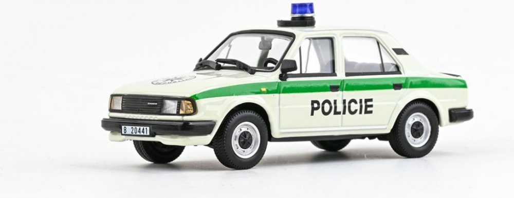 Model auta Škoda 120L (1984) Policie v měřítku 1:43 vyrobený českým výrobcem modelů Abrex. Model autíčka je vyrobený z kovu a plastu. Autíčko je dodáváno v plastové průhledné dárkové krabičce a je vhodné jako dárek pro milovníka nebo majitele automobilu značky Škoda.