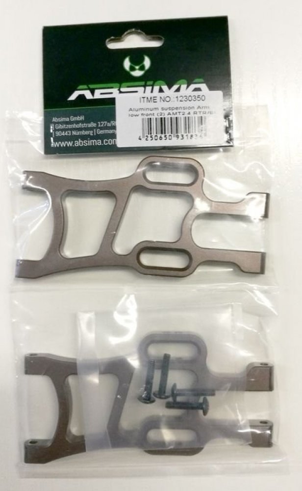 Kovová přední ramena pro RC modely Absima 2.4 AMT Hliníková přední spodní ramena pro RC auta Absima řady 2.4 AMT 1:10 Pasuje na monster Absima 2.4 1:10, Himoto buggy/truggy 1:10 Balení 2ks (pravý + levý)