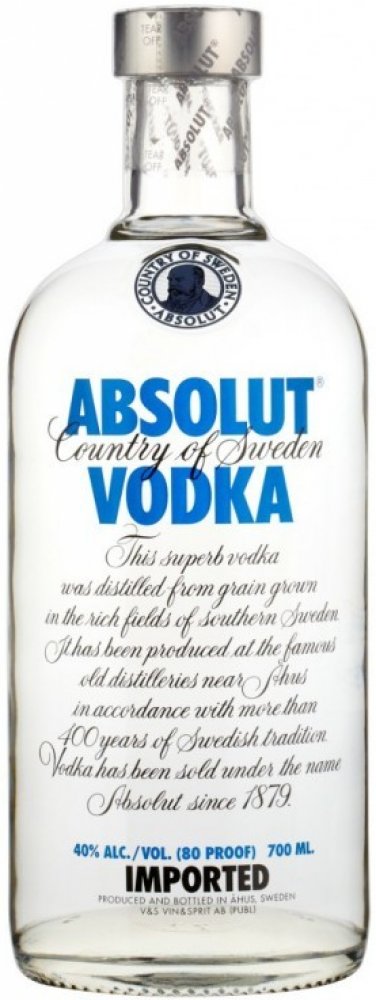Vodka Absolut byla v současné podobě představena v roce 1979, ale její původ sahá až do roku 1879. Nyní je druhou nejprodávanější značkou mezi prémiovými vodkami v celosvětovém meřítku a celkově čtvrtou největší značkou mezi prémiovými destiláty. Vyrábí se v obci Ahus z ozimé pšenice pocházející z jihu Švédska unikátní metodou kontinuální destilace. Tato metoda byla představena v 19. století krále...