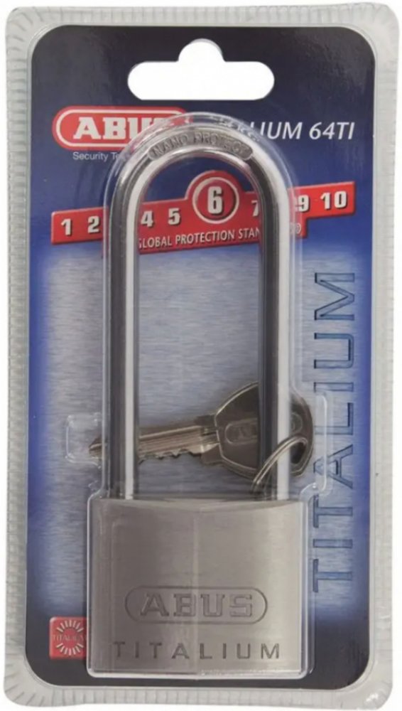 Visací zámekKvalitní uzamykací systém ABUS s paracentrickou drážkou. Tělo zámku je vyrobeno ze speciálně upraveného hliníku - TITALIUM.Vysoká bezpečnost a nízká váhaOko zámku je vyrobeno z tvrzené oceli (NANO PROTECT)Ochrana proti planžetěDvoubodové jištění oka v těle zámkuVelká odolnost vůči koroziŠesťstavítková cylindrická vložka, dvojité jištění oka v těle zámku.Zamknutí zatlačením oka, bez použití klíčeParametry:Stupeň ochrany: 6Tloušťka oka d: 8 mmSvětlost oka (c x b): 80x29 mmŠířka zámku a: 50 mmPočet klíčů: 2 ksPočet zámků: 1 ksHloubka e: 17 mmVýška f: 128 mmHmotnost: 200 gMateriál:Tělo zámku je ze speciální slitiny hliníku TIATLIUM - vysoká bezpečnost v kombinaci s nízkou hmotností.TITALIUM - zabezpečení pro budoucnost.Visací zámky TITALIUM, od specialisty na bezpečnost, představují novou dimenzi v oblasti zabezpečení.Zámky jsou vyrobeny z inovativních materiálů, které zajišťují velkou bezpečnost při výrazně nižší hmotnosti.Materiál TITALIUM je speciální slitina hliníku, která jedinečným způsobem kombinuje robustnost a lehkost.S TITALIUM se ABUS soustředí na dvě základní vlastnosti: maximální pevnost a nízká hmotnost.Tento moderní materiál se odráží na designu všech produktů. Visací zámky z rodiny TITALIUM mají povrch z nerezavějící oceli.TITALIUM je nová generace visacích zámků. Hmotnost zámků byla snížena přibližně o 30% ve srovnání s tradičními mosaznými zámky se stejnou úrovní bezpečnosti.Zámky TITALIUM se staly atraktivní alternativou k původním zámkem.Visací zámky řady TITALIUM jsou nabízeny v různých velikostech pro splnění všech bezpečnostních požadavků.Jsou vhodné pro soukromé, ale i komerční využití.TITALIUM je silný, lehký, inovativní.Tvrzené ocelové oko zámky s povrchovou úpravou NANO PROTECT pro maximální odolnost vůči korozi.Šesťstavítková cylindrická vložka, dvojité jištění oka v těle zámku.