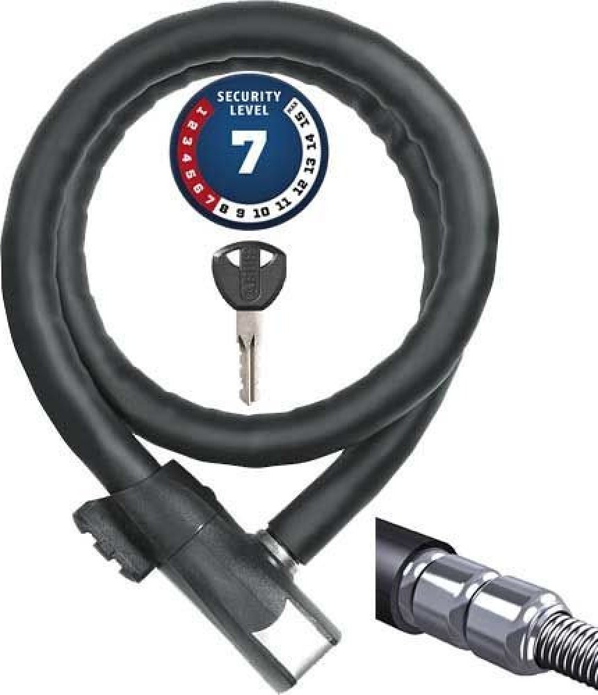 Zámek od značky Abus který je ideální pro zajištění jízdního kola, nebo motocyklu. Je tvořen ocelovým lankem, které je chráněno pláštěm z tvrzených válečků. Válečky jsou i v uzamykacím mechanizmu a jsou vyrobené z tvrzené oceli. Na tento zámek se opravu můžete spolehnout.