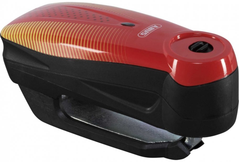 Bezpečnostní zámek na kotouč s alarmem pro motorku. Vlastnosti: Obdélníkový (3 x 5 mm) ocelový třmen - třmen, tělo zámku, jakož i součásti uzamykacího mechanizmu jsou vyrobeny ze speciálně tvrzené oceli - 3D alarm detekční systém, který zaznamená každý pohyb - 3D senzor okamžitě spustí alarm při změně polohy zámku nebo při pokusu o nežádoucí manipulaci - alarm s intenzitou 110 dB - vícebarevné LED světlo a zvukové signály ohlašující aktivaci alarmu a vybití baterií - jednoduché ovládání jednou rukou - zámek se uzavírá a aktivuje automaticky po nasazení na kotouč - ABUS Extra Classe zámek s oboustranným jamkovým klíčem - součástí jsou dvě AAA baterie - dva klíče. Security level: 13/20. Rozměr třmenu: 3 x 5 mm, Světlost zámku: 70 mm, Hmotnost: 600 g. Barevné provedení: Sonic Red