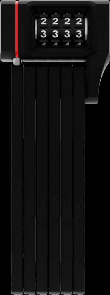 Zámek svou stavbou nápadně připomíná skládací metr, jeho tělo je však tvořeno pěti ocelovými pláty, které jsou spojeny speciálními nýty. Zamykací systém je kvalitní a hlavně velmi odolný proti nežádoucí manipulaci (např. planžetou). Odemyká se pomocí 4 místního číselného kódu. Zámek je možné převážet přímo na kole díky transportnímu pouzdru, které se přichytí buď na místo držáku na láhev pomocí dvou šroubů nebo kovovým páskem kdekoliv na rám. Pouzdro vám tak usnadní přepravu, výborně se s ním manipuluje, je součástí balení. Skládací zámky Abus se vyznačují svou odolností, flexibilitou a hmotností a také byly testovány v extrémních mrazivých podmínkách.