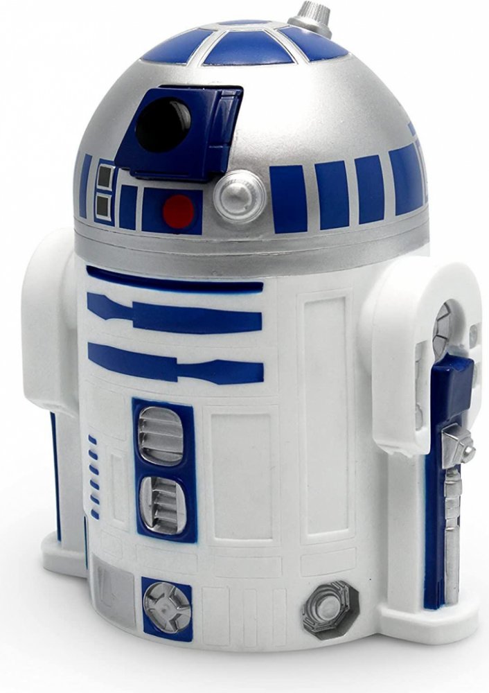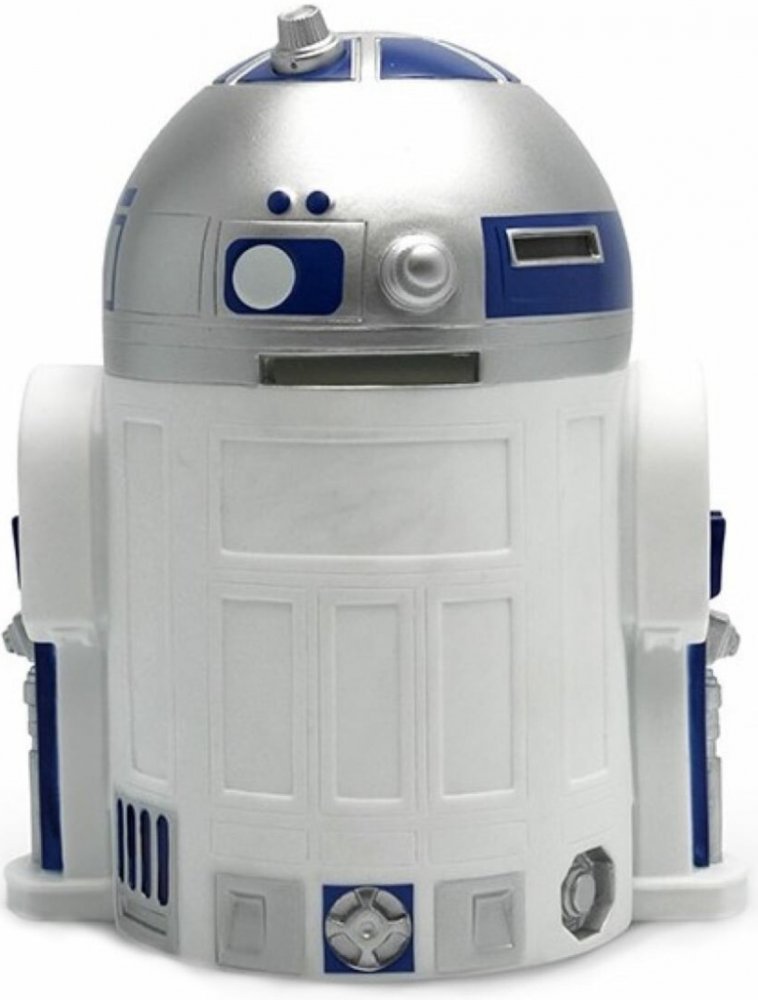 - R2-D2, věrný astromechanický droid, stojí hrdě jako strážce vašich úspor. Jeho věrná replika zaujme každého fanouška ságy Star Wars a přitom zachovává všechny charakteristické detaily tohoto ikonického droida.