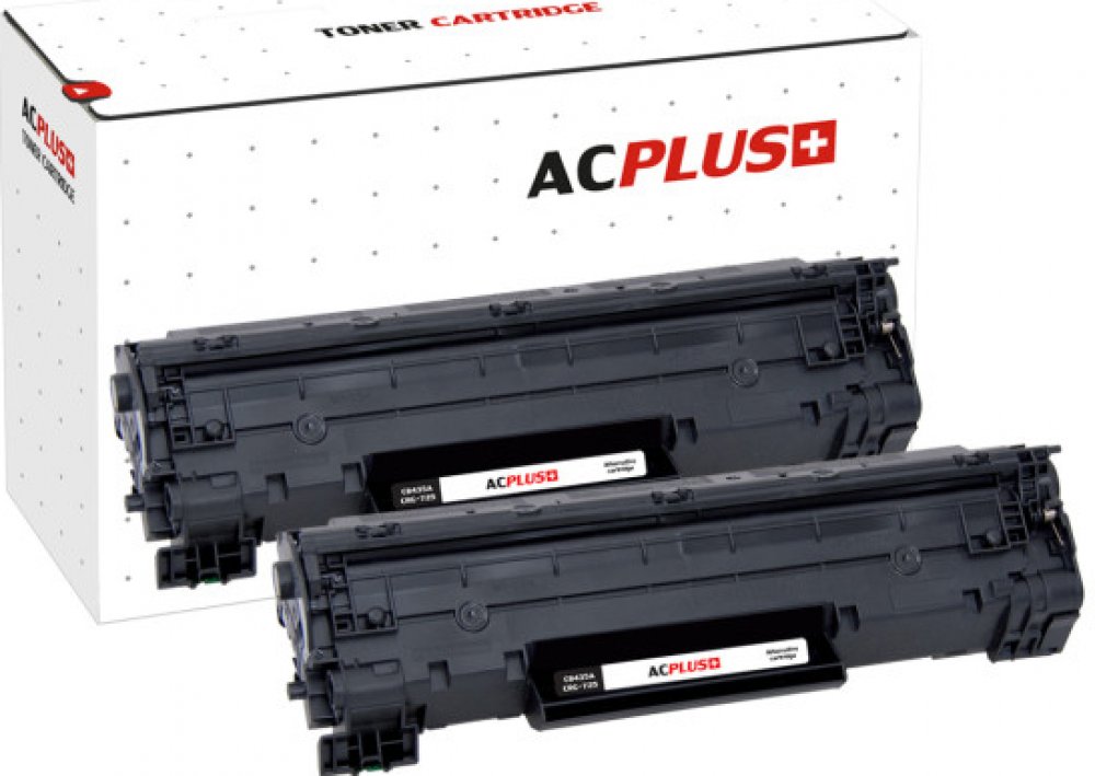 Náplň Toner AC Plus CB435/ CB436/ CE285/ CE278/ CRG725/ CRG728 černý - UNI pro tiskárny HP a Canon (2 000 stran), která byla vyrobena pod značkou AC Plus.