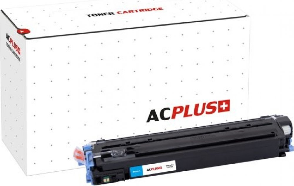 Náplň Toner AC Plus Q6001A azurový pro tiskárny HP (2 000 stran), která byla vyrobena pod značkou AC Plus.