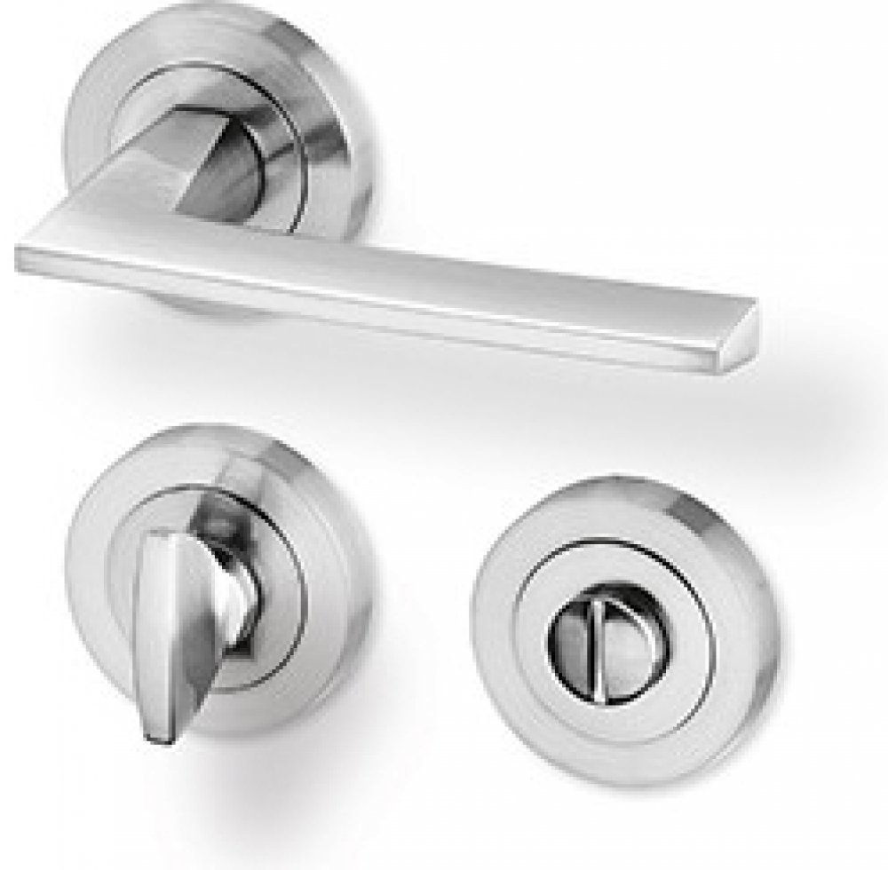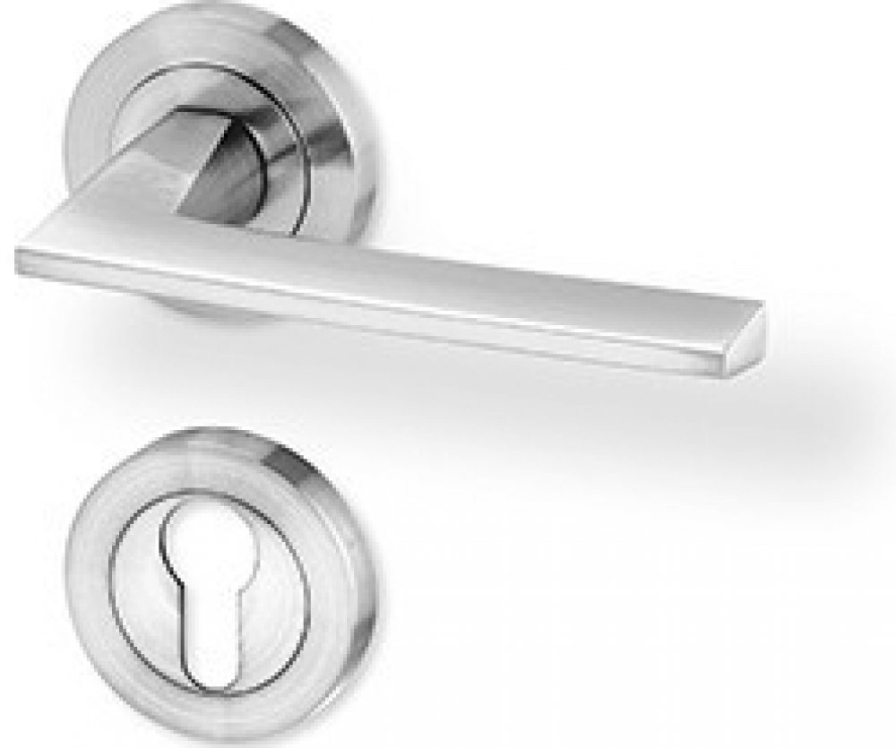 Nová modelová řada interiérového kování s povrchem efekt nerez. Šroubovací kulatá rozeta.
