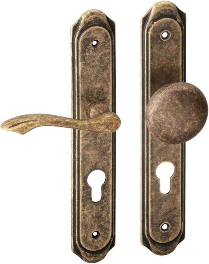 Rustikální dveřní kování do interiéru - štítková klika oválná na dveře.