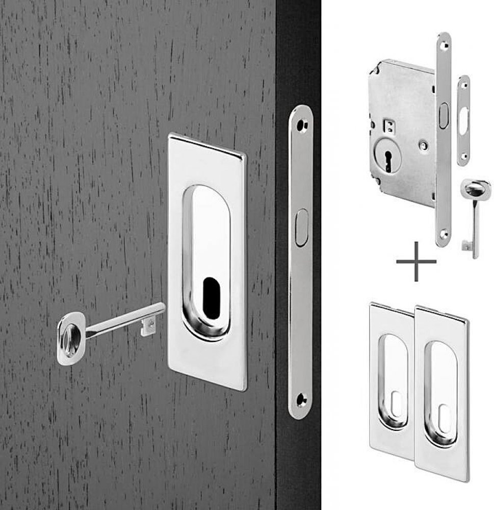 Výhodná sada dvou úchytů a zadlabacího zámku pro posuvné dveře. Dostupné v široké škále barevných provedení. Varianty s WC kličkou, obyčejným klíčem nebo stavební vložkou - fabkou.