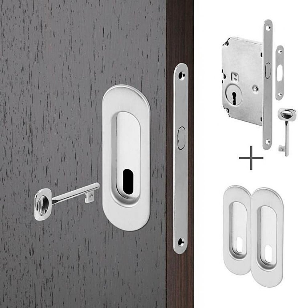 Výhodná sada dvou úchytů a zadlabacího zámku pro posuvné dveře. Dostupné v široké škále barevných provedení. Varianty s WC kličkou, obyčejným klíčem nebo stavební vložkou - fabkou.