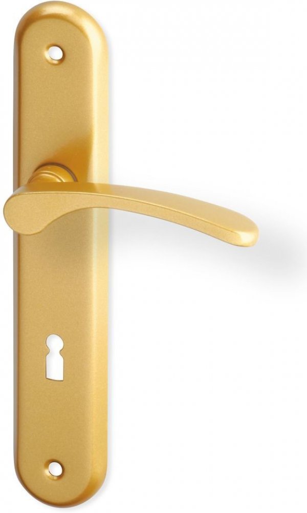 Dveřní kování Viola je štítové kování s roztečí 72 mm a otvorem pro dózický klíč, které využijete v interiérech pro snadné otevírání a zavírání dveří. Kování Viola je vyrobeno z hliníku, a proto zaručuje dobrou odolnost. Zlaté provedení a moderní design přispěje k celkovému vzhledu každé domácnosti. Kování lze snadno namontovat pomocí dvou šroubů. Součástí není zámek.