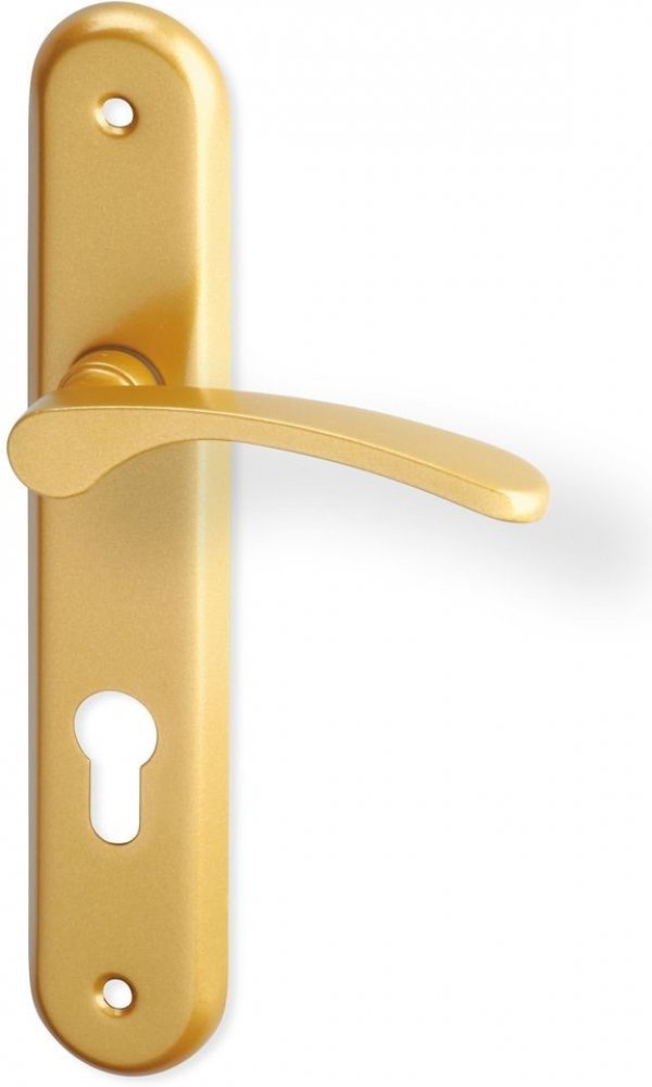Dveřní kování Viola je štítové kování s roztečí 72 mm a otvorem pro cylindrickou vložku, které využijete v interiérech pro snadné otevírání a zavírání dveří. Kování Viola je vyrobeno z hliníku, a proto zaručuje dobrou odolnost. Zlaté provedení a moderní design přispěje k celkovému vzhledu každé domácnosti. Kování lze snadno namontovat pomocí dvou šroubů. Součástí není zámek.