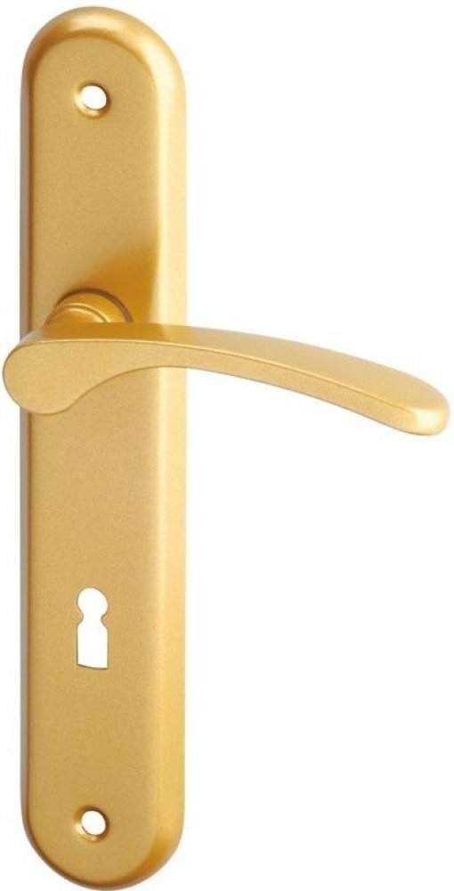 Dveřní kování Viola je štítové kování s roztečí 90 mm a otvorem pro dózický klíč, které využijete v interiérech pro snadné otevírání a zavírání dveří. Kování Viola je vyrobeno z hliníku, a proto zaručuje dobrou odolnost. Zlaté provedení a moderní design přispěje k celkovému vzhledu každé domácnosti. Kování lze snadno namontovat pomocí dvou šroubů. Součástí není zámek.
