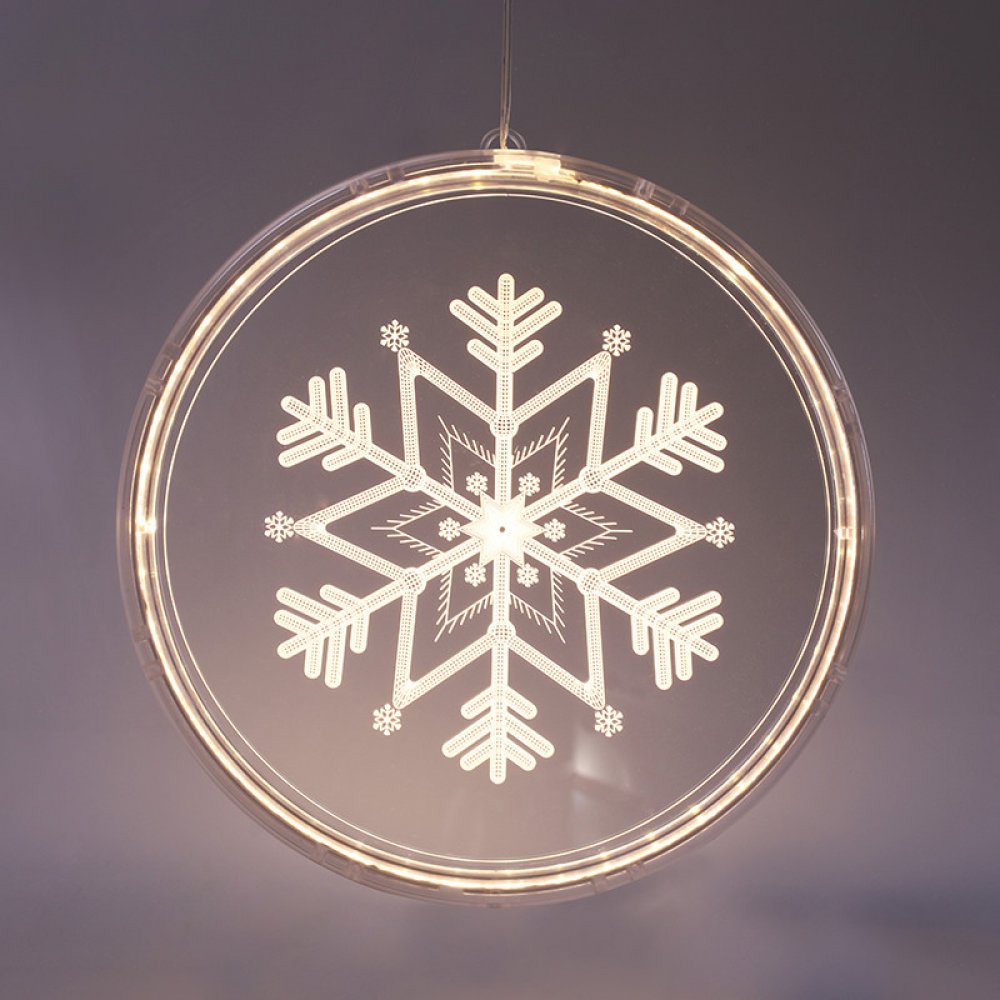 ACA Lighting 3D LED vánoční vločka do okna teplá bílá barva IP20 akryl