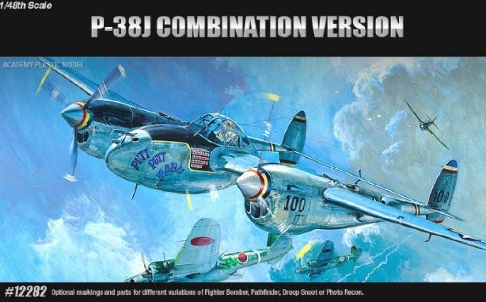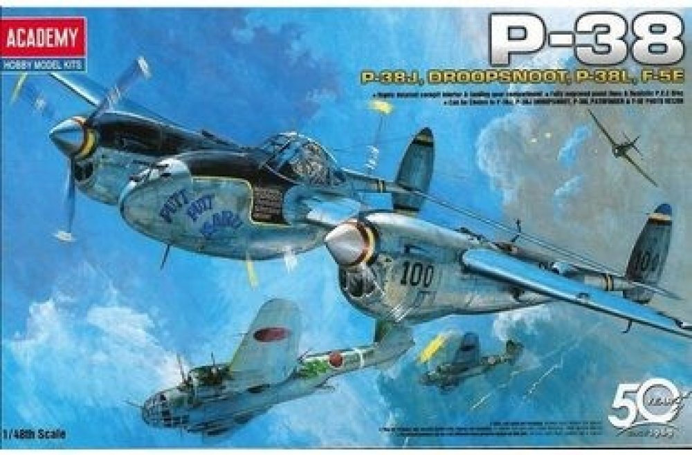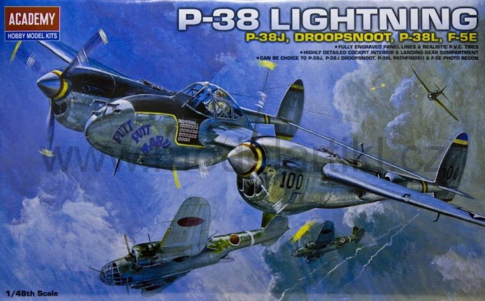 Academy plastikový model letadla Lockheed P-38 Combination Version v měřítku 1:48 ke slepení.
