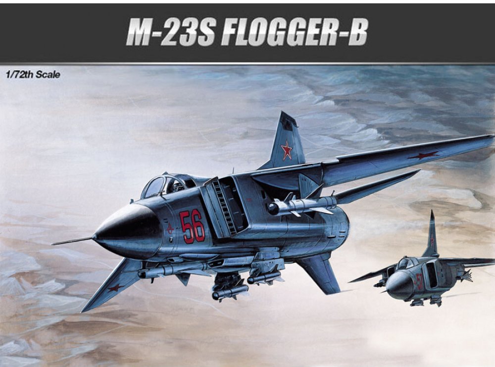 CharakteristikaPlastikový model Academy 12445 - letadlo MiG-23S Flogger-B v měřítku 1:72 ke slepení.CharakteristikaPlastikový model Academy 12445 - letadlo MiG-23S Flogger-B v měřítku 1:72 ke slepení. Informace o předloze: MiG-23 (v kódu NATO: „Flogger“) je sovětský proudový stíhací letoun s měnitelnou geometrií křídel. MiG-23S („Flogger-A“) byla počáteční výrobní varianta. V letech 1969 až 1970 jich bylo vyrobeno jen asi 60. Tato letadla byla používána pro letové i provozní zkoušky. MiG-23S měl vylepšený proudový motor R-27F2-300 s maximálním tahem 98 kN (22 000 lbf). Vzhledem k tomu, že radar Sapfir-23 byl zpožděn, byla letadla instalována se systémem řízení zbraní S-21 s radarem RP-22SM. V zásadě se stejným systémem zbraní jako u MiG-21MF / bis. Pod trupem byla namontována dvouhlavňový kanón 23 mm GSh-23L s 200 náboji. Tato varianta trpěla různými problémy s kousáním a nikdy nebyla postavena jako operační bojovník. MiG-23M („Flogger-B“) Tato varianta poprvé vzlétla v červnu 1972. Byla to první skutečně sériově vyráběná verze MiG-23 a první stíhačka VVS, která byla vybavena schopnostmi rozhlížení / sestřelení (ačkoli tato schopnost byla zpočátku velmi omezené). Křídlo bylo znovu upraveno a nyní mělo přední lamely. Motor Tumansky R-29 (R-29A) byl nyní dimenzován na 123 kN (27 600 lbf). Konečně měla definitivní sadu senzorů: vylepšený radar Sapfir-23D (NATO: „High Lark“), senzor TP-23 pro vyhledávání a sledování infračerveného záření (IRST) a zaměřovač ASP-23D. Radar „High Lark“ měl dosah detekce asi 45 km proti vysoko letícímu cíli velikosti stíhače. Nebyl to pravý Dopplerův radar. Místo toho využil méně účinnou techniku „detekce obálky“, podobnou některým radarům západních stíhaček v 60. letech.