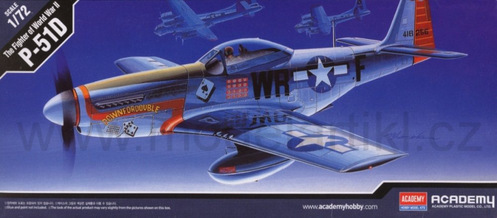 Plastikový model Academy 12485 - letadlo North American P-51D v měřítku 1:72 ke slepení.